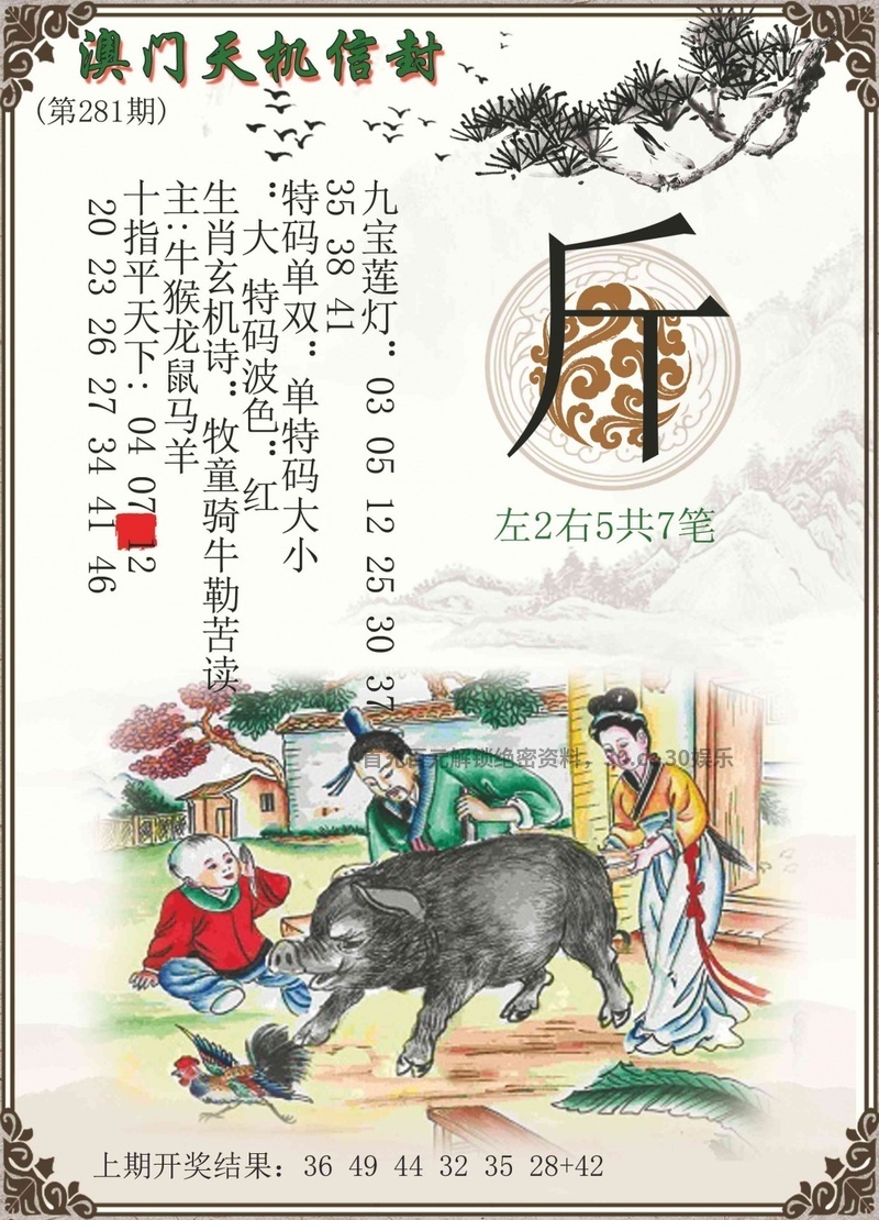 284期:必中天机/特七决/正版欲钱料/特码生肖诗/澳门天机诗